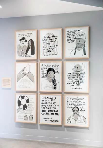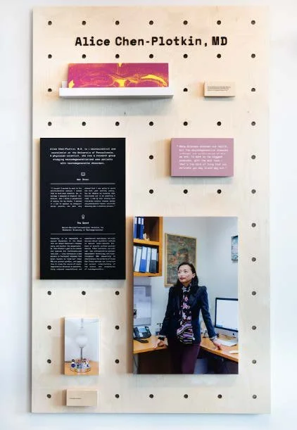 47 installations across 3 floors aimed to inspire CZI employees during their day and illustrate the tangible impact of their work in local communities. The installations included lenticular models informed by housing affordability, a hand painted mural about grantmaking in education, pegboard installations highlighting female scientists and their research, and illustrated portraits of formerly incarcerated leaders.